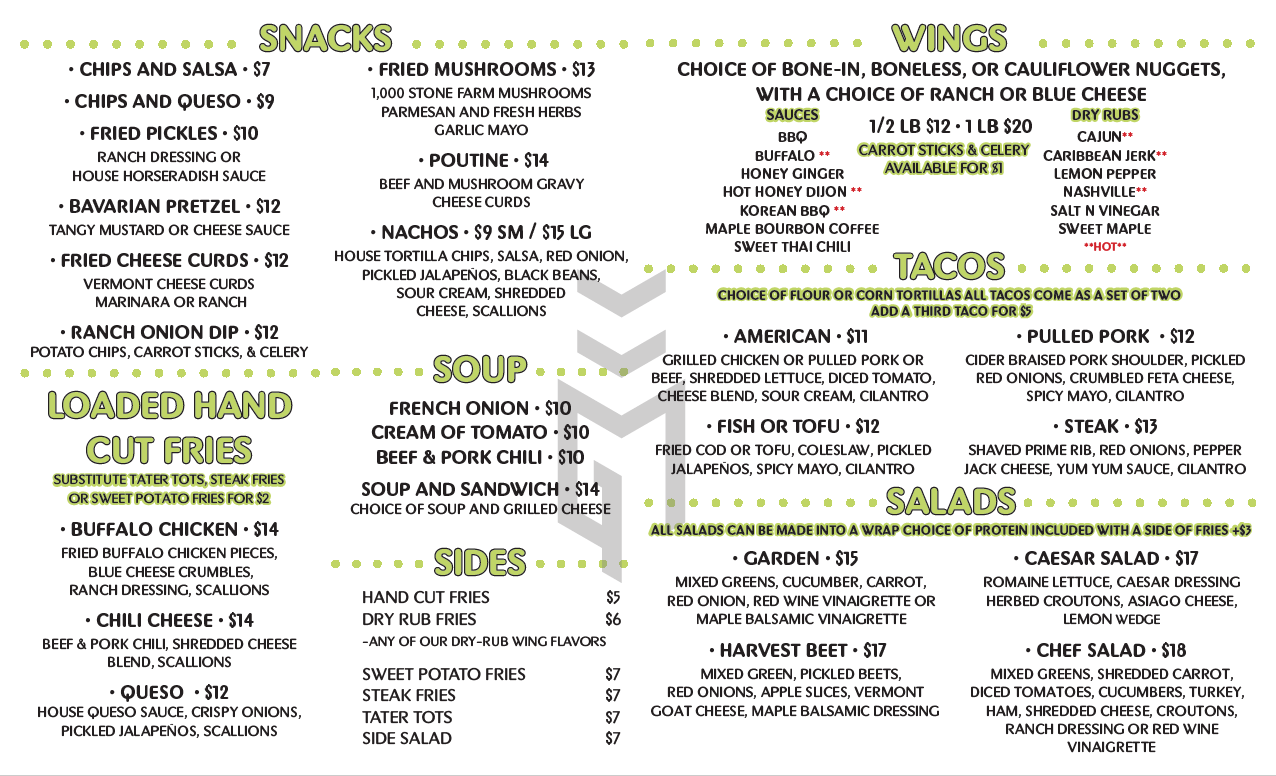 We are open with our full menu seven days a week 11:30-9:00 PM